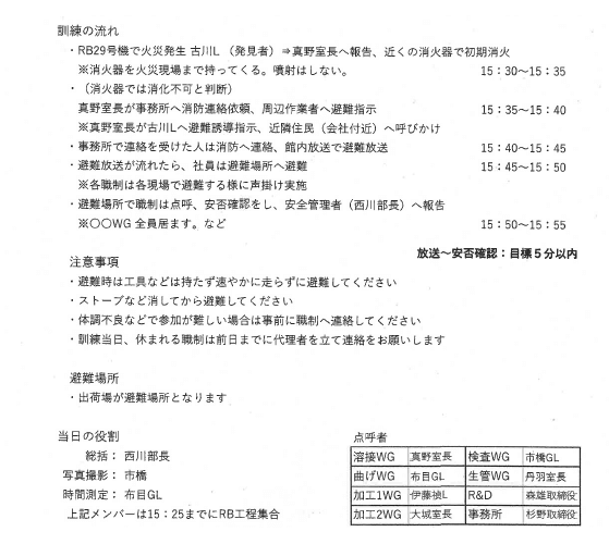 2025年12月20日(土)本社工場にて避難訓練を実施しました。